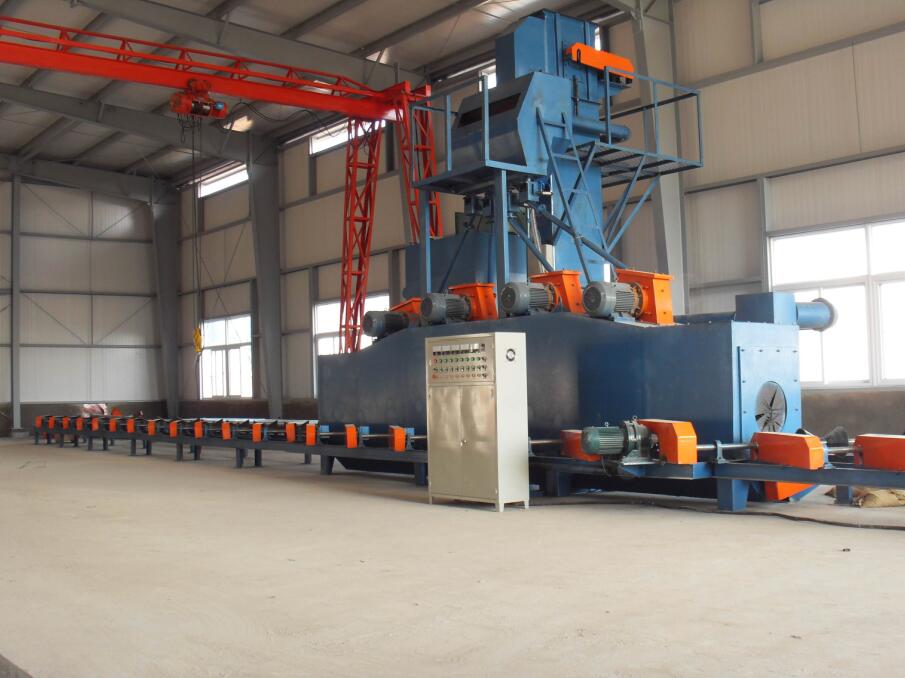 鋼結(jié)構(gòu)/鋼板以及一些大型焊接件進(jìn)行防腐除銹工作時(shí),必須要用到的通過式拋丸清理機(jī),適用于一些較長的工件清理,可連續(xù)通過并可以實(shí)現(xiàn)高效拋丸為目的的專用型設(shè)備。